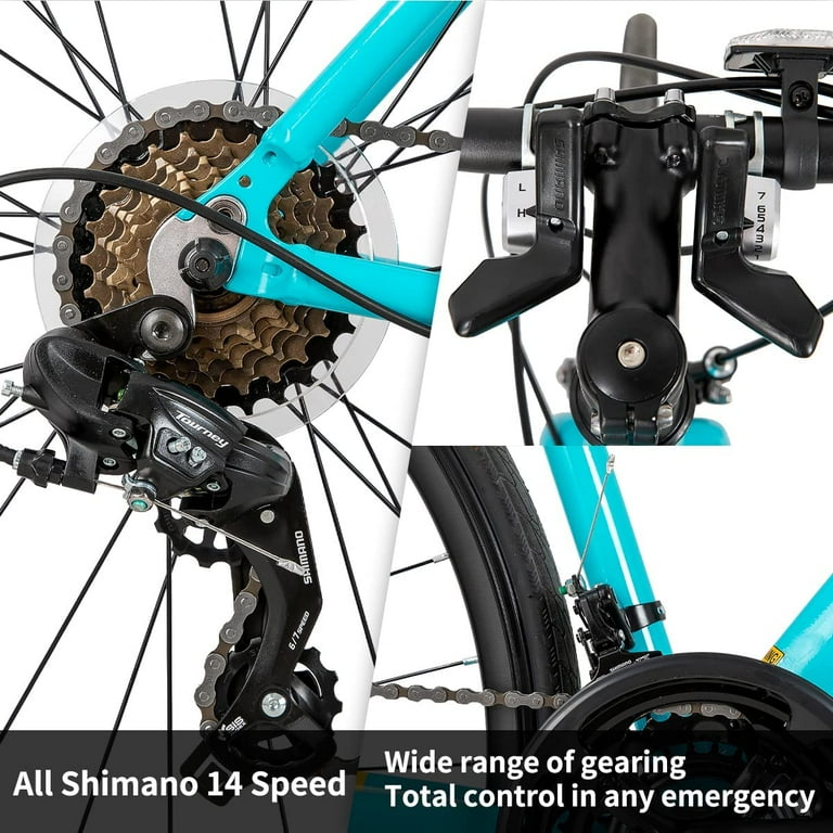 Hiland Aluminum Road Bike All Shimano Drivetrain 21 Speeds Dual Disc Brakes Multiple Styles With 700c Wheels For Men Mens Road Bicycle Walmart Com